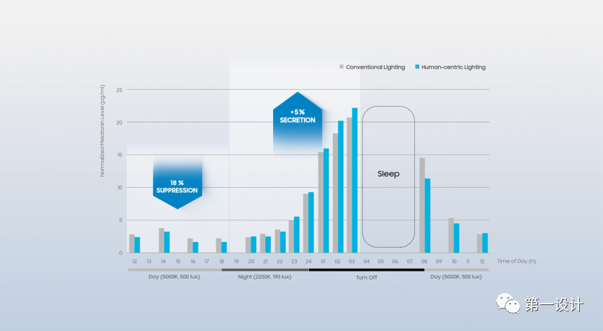 三星人本照明LED产品-LM302N,经过临床试验: 白天褪黑色素水平降低18%,精神集中度提升3%; 在夜晚可使褪黑色素水平上升5%,并让人提前52分钟进入深度睡眠状态。 产品相关视频新鲜出炉!请点击观看。